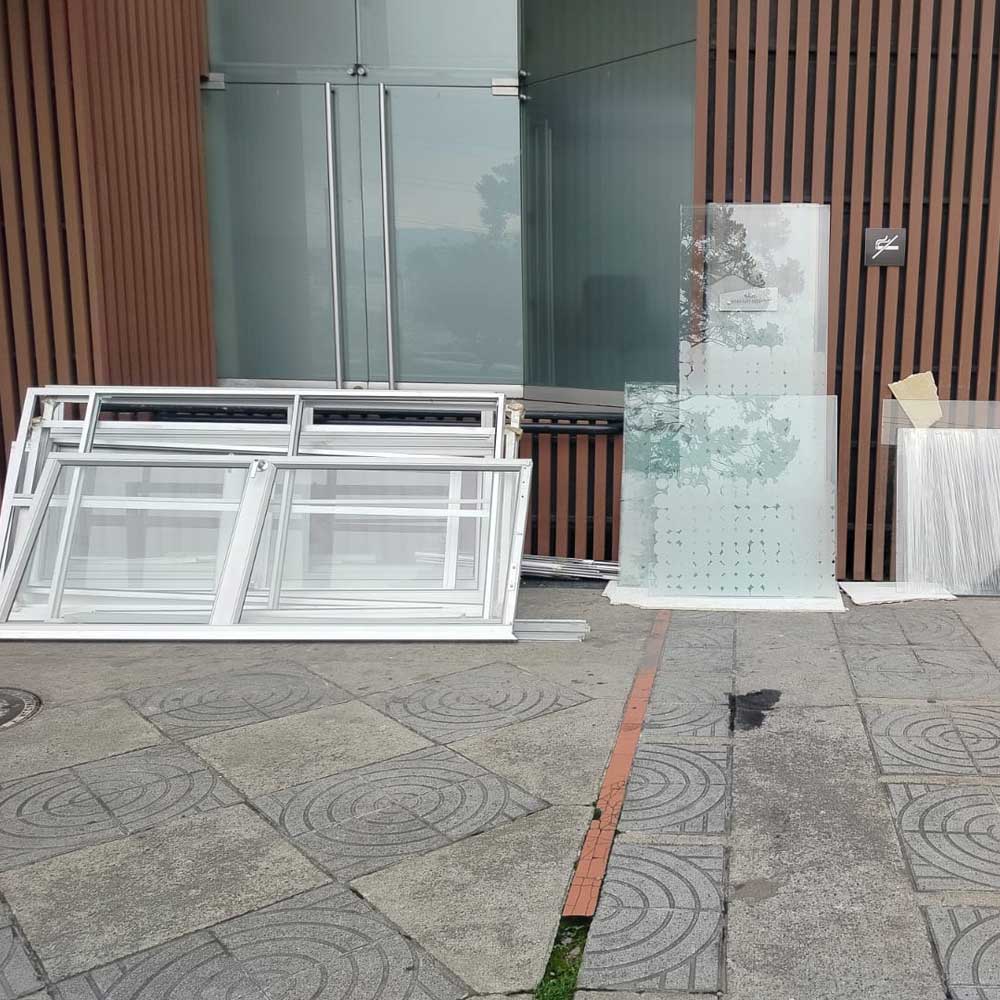 Desmonte de divisiones y puertas en vidrio templado m²
