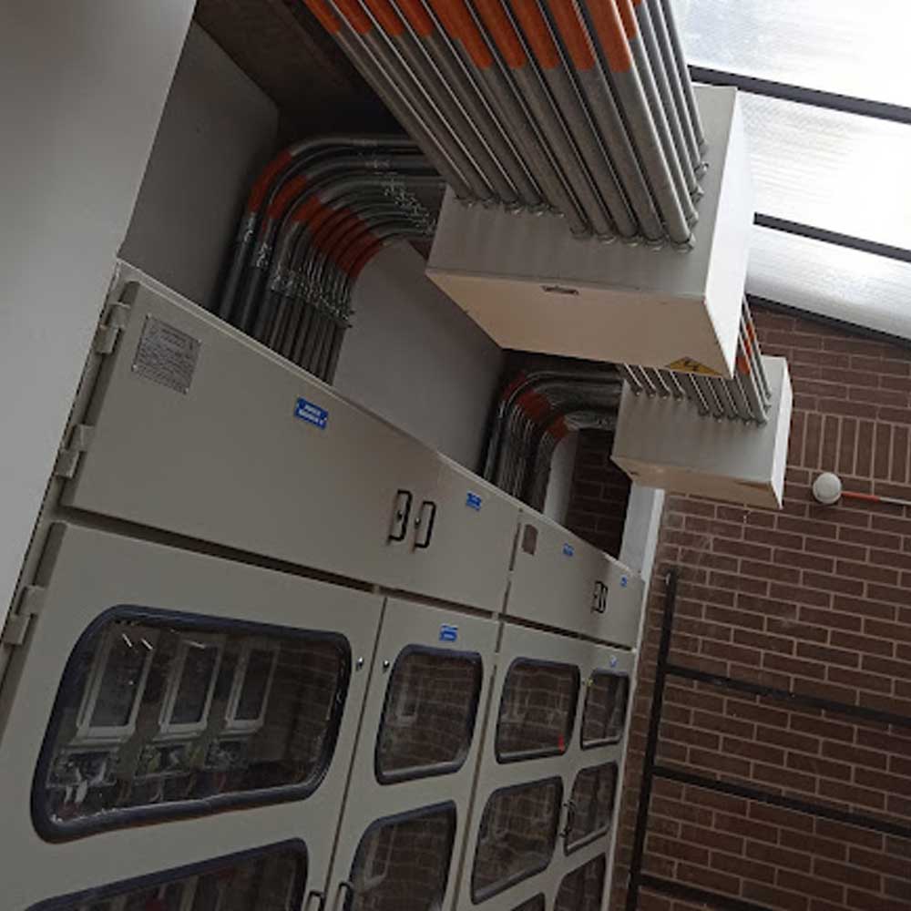 Planta General de Ubicación Proyectada: Muestra la disposición de los equipos y rutas de las redes de BT en cada nivel de la edificación, considerando distancias de seguridad, rutas de conductores, iluminación y sistemas de puesta a tierra.