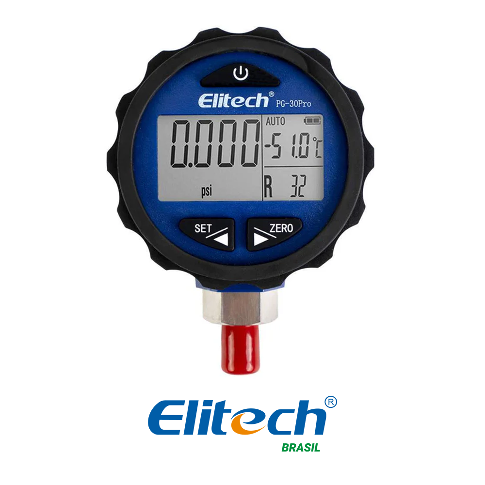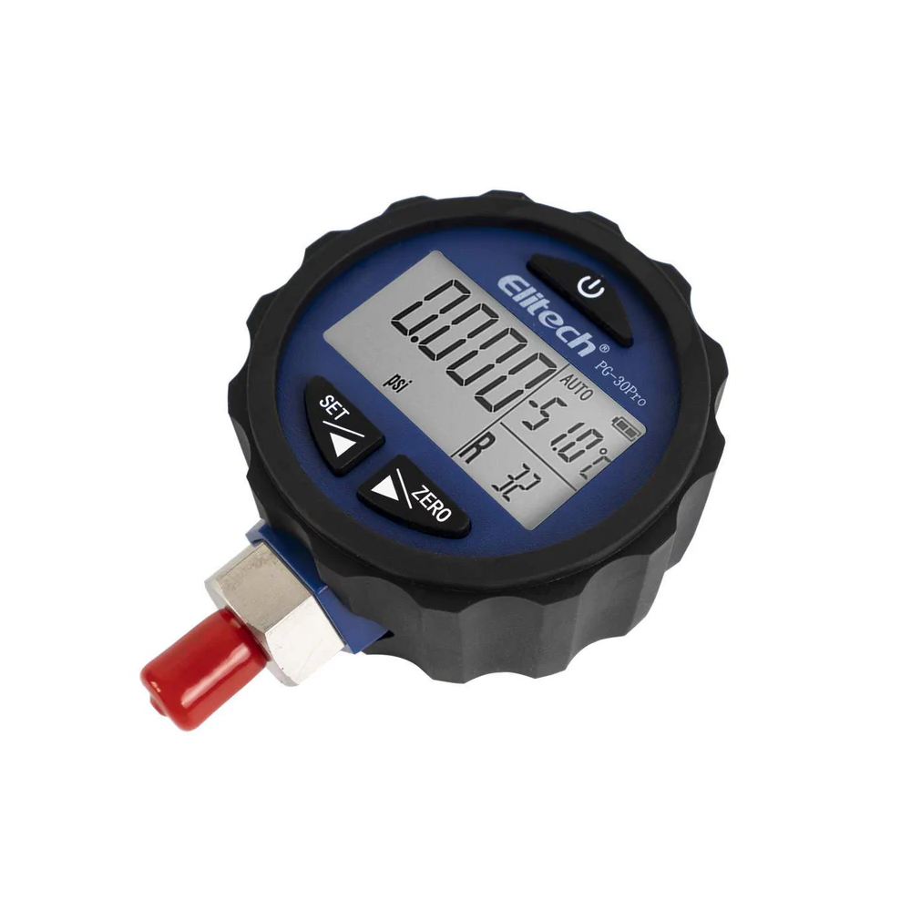 Elitech PG-30Pro es un manómetro digital que mide la presión del sistema en tiempo real. Cuenta con una gran pantalla artística y baterías con una vida útil de 1 año. Este medidor de colector de refrigerante tiene luz de fondo, apagado automático, indicación de batería baja, alarma de sobrepresión y otras funciones. Está diseñado para su uso en sistemas de tuberías, sistemas refrigerados y otras aplicaciones.