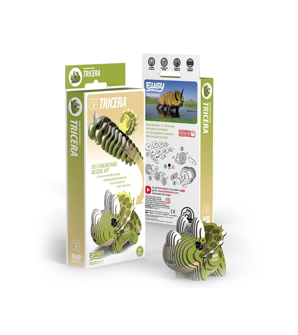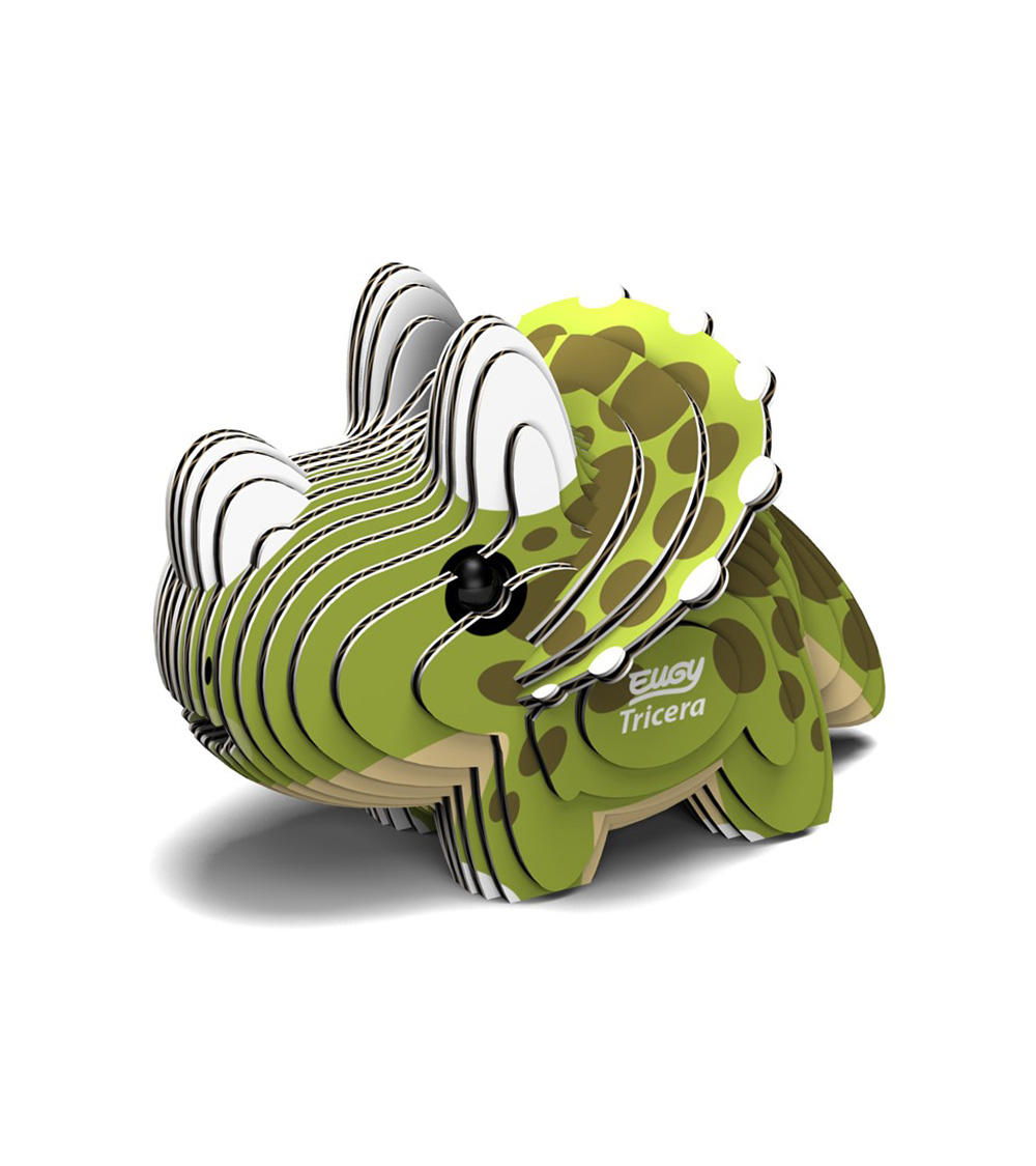 Eugy Tricera es un puzzle en 3D. Hay muchas otras figuras para coleccionar, una simpática y didáctica manera de decorar los estantes de una habitación
