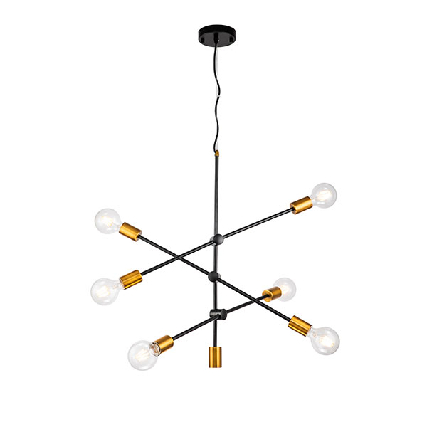 IM1 LAMPARA COLGANTE BRAZOS NEGROS SOCKET DORADO T/VINTAGE 26742A-GD 7L E27