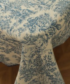 Mantel en Toile de Jouy azul con curvy azulina es una pieza sofisticada y elegante, perfecta para vestir tu mesa con un toque de encanto clásico y modernidad. En primer lugar, el diseño característico de Toile de Jouy, conocido por sus escenas detalladas y paisajes románticos, aporta un aire atemporal a cualquier espacio. Además, el color azul predominante resalta con suavidad, creando una atmósfera tranquila y sofisticada, ideal para una variedad de ocasiones, desde cenas formales hasta reuniones más casuales.
