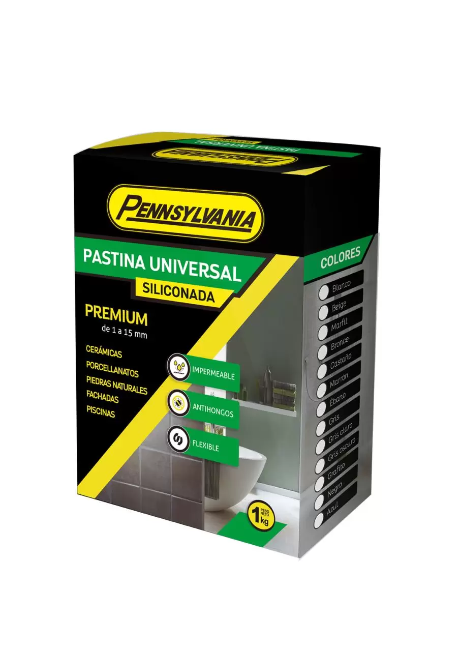 Pastina Pennsylvania es un mortero cementicio para relleno de juntas entre piezas de piso. Disponible en varios colores, se puede usar con todo tipo de piezas, cerámicas, porcelanatos, piedras naturales y piezas de vidrio. Apto para uso en piscinas.