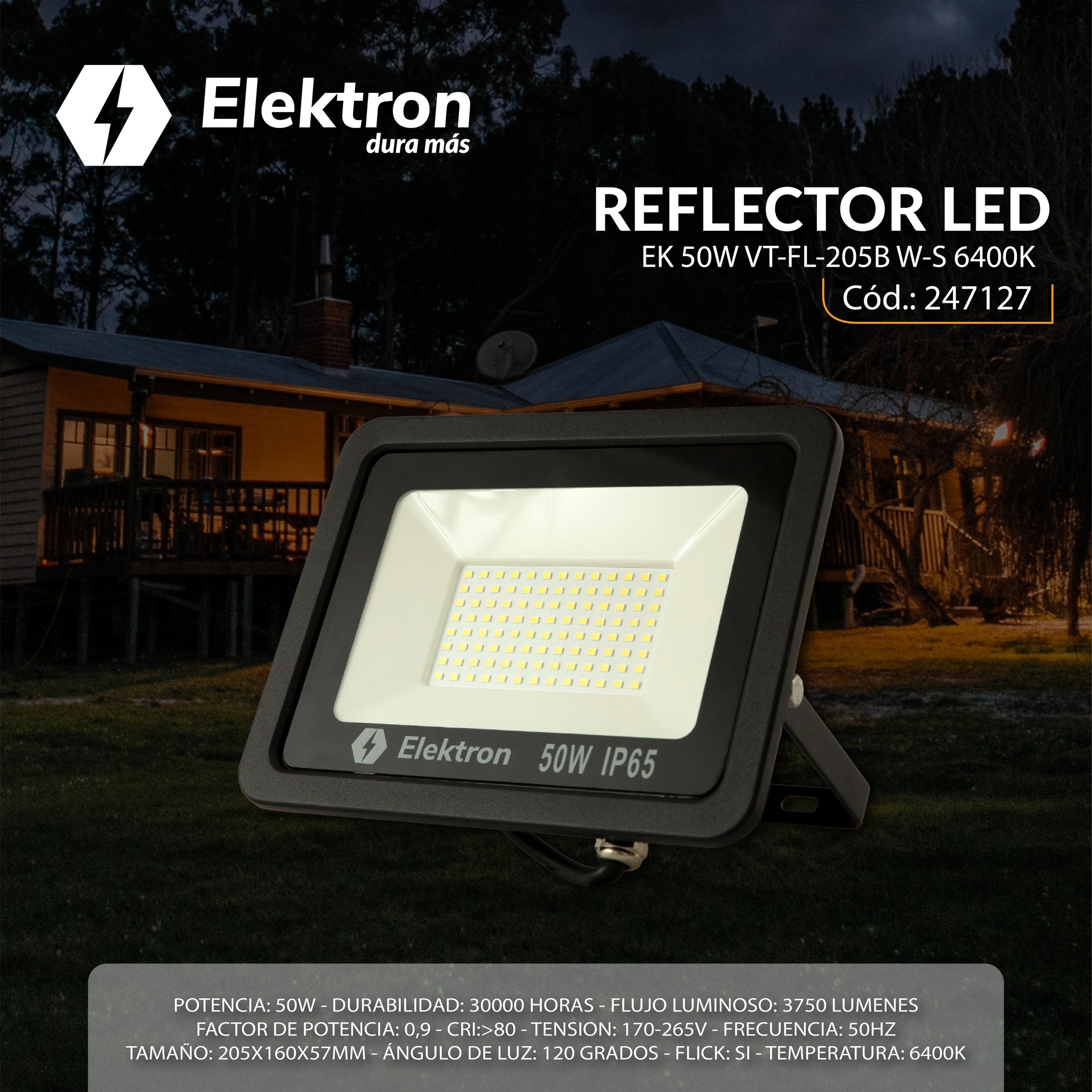 REFLECTOR LED ELEKTRON 50W VT-FL 205B W-S 6 – CÓD: 254
