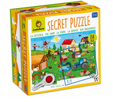 Encaja las 24 piezas de este fantástico secret puzzle de Ludattica y construye el escenario de la granja. ¡A continuación, descubre los secretos del mundo de los animales con las gafas proporcionadas!