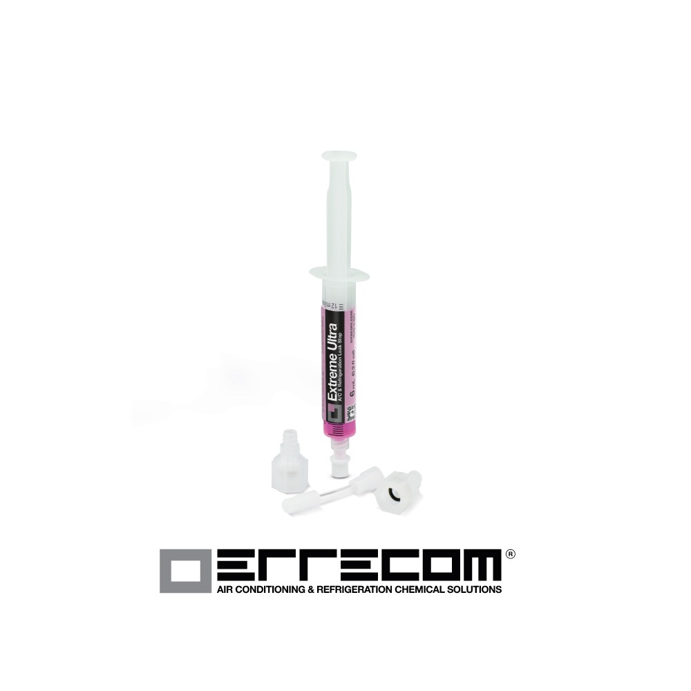 EXTREME ULTRA es el innovador sellador de fuga para pérdidas de gas refrigerante que resuelve todos los problemas relacionados con las pequeñas fugas de gas refrigerante en los sistemas de aire acondicionado y refrigeración. Después de realizar miles de test y más de 4 años de investigación y desarrollo, ERRECOM ha desarrollado una dosis de sólo 6 ml que trabaja con todos los tipos de gases refrigerantes.