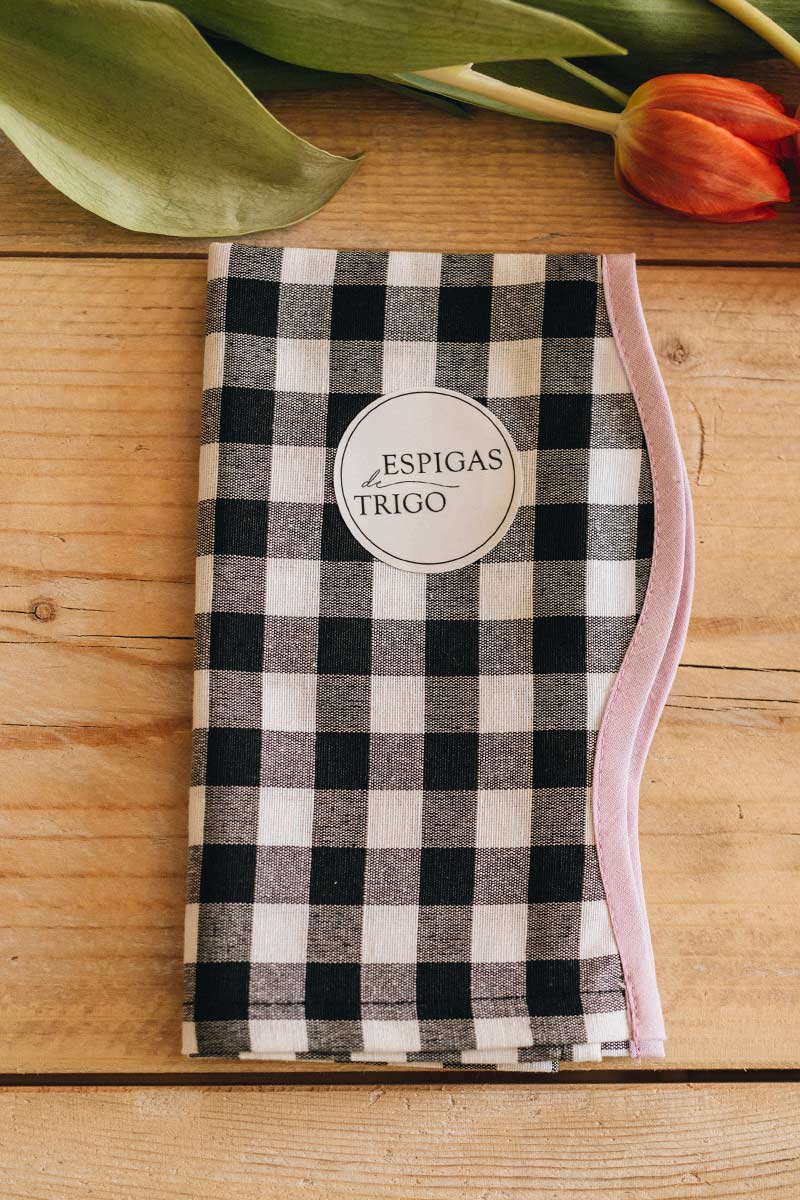 Servilletas de algodón tejido en cuadros vichy con curvy color negro. Medida 45*45 cm (Servilleta abierta).