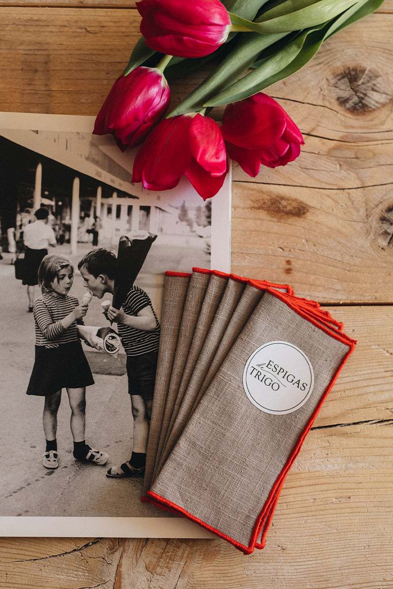 Las Servilletas Aperitivo Festón Teja son un pack de 6 servilletas de lino individuales para la mesa en color gris con filos de color teja. Esta servilleta está confeccionada en lino con filos en contraste. Presentamos nuestra exclusiva colección de servilletas individuales, una elegante adición a tu mesa que combina sofisticación y estilo. Cada una de las piezas de Espigas de Trigo está meticulosamente confeccionada en lino de color o blanco de la más alta calidad, ofreciendo una sensación de lujo y refinamiento a cada comida. El detalle del filo de color en el borde añade un toque de modernidad y contraste, elevando el diseño clásico a un nivel completamente nuevo.