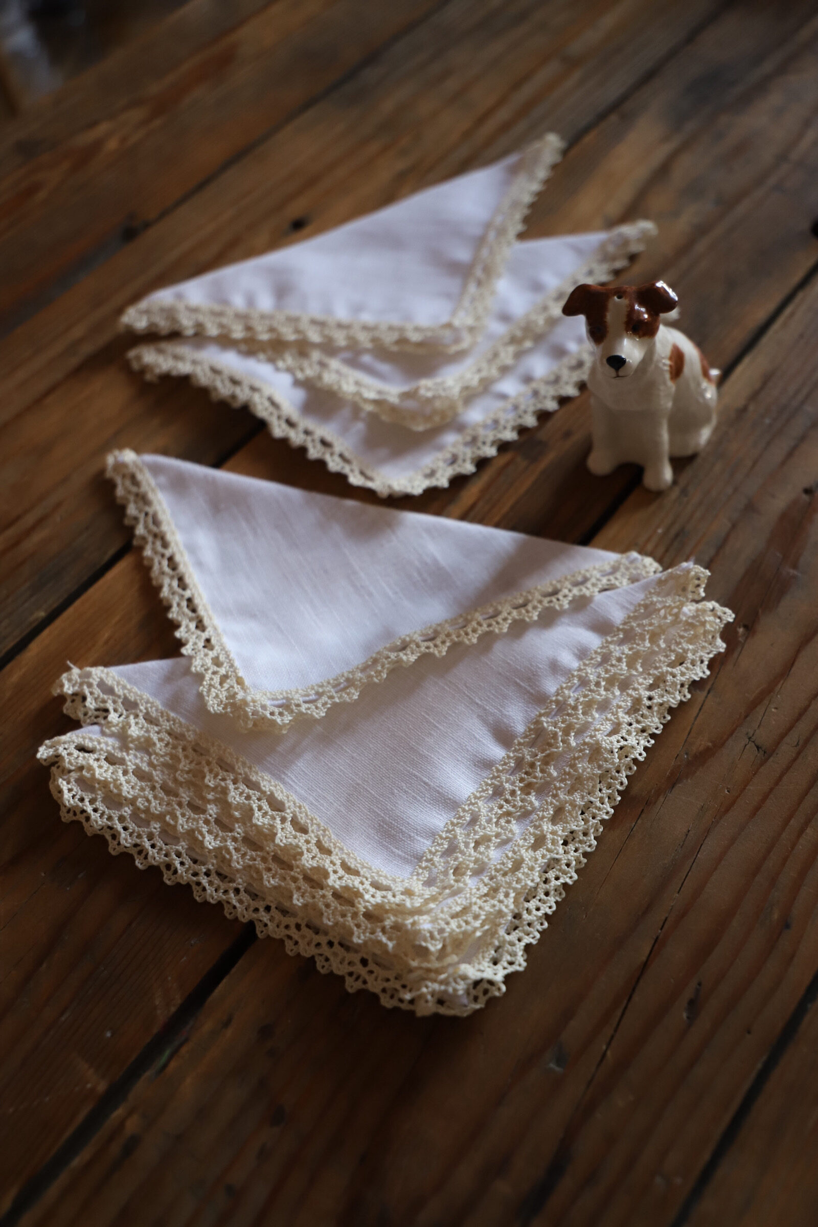Pack de servilletas de lino en blanco con puntilla en color hueso.